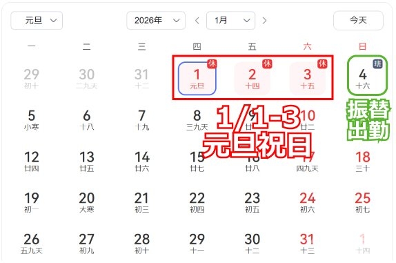 2026年   1月01日(木)  祝日休業